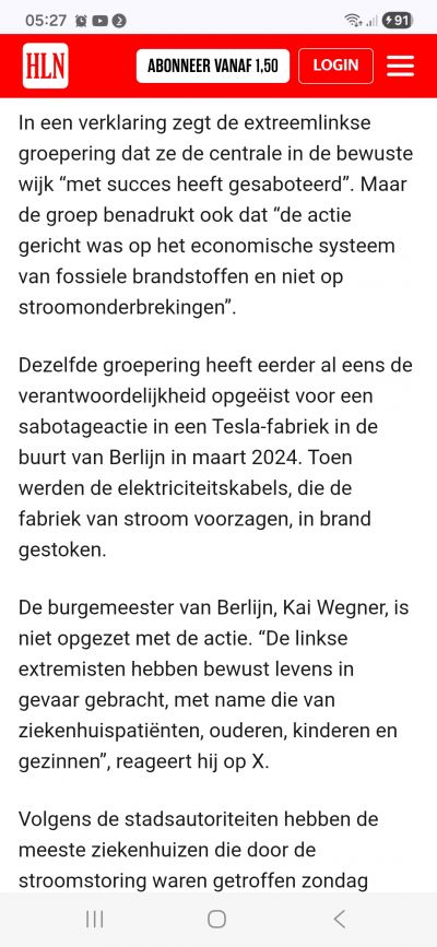 Politie van Berlijn verdenkt extreemlinkse groepering voor sabotage van stroomtoevoer die tot black-out leidde